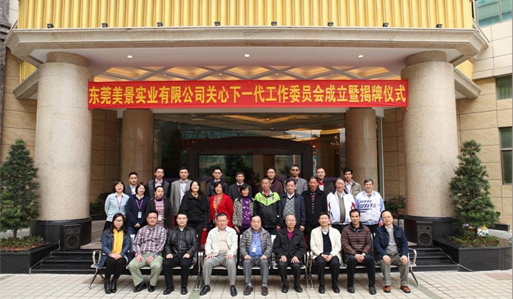 2014年12月5日,“東莞美景實業(yè)有限公司關心下一代工作委員會成立暨揭牌儀式”隆重舉行。塘廈鎮(zhèn)委領導代表、鎮(zhèn)關工委、老年中心全體人員、石鼓社區(qū)“兩委”干部、警務區(qū)警長及社區(qū)關工委全體成員、東莞美景實業(yè)有限公司關工委全體成員及員工代表、石鼓社區(qū)其他公司代表等101人出席此次揭牌儀式。